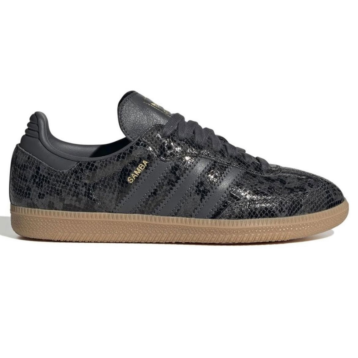 Un clásico renovado. Este modelo de Adidas Samba fue customizado con un acabado exclusivo en textura black snake, que le aporta un estilo sofisticado y llamativo sin perder la esencia retro que caracteriza a las Samba.